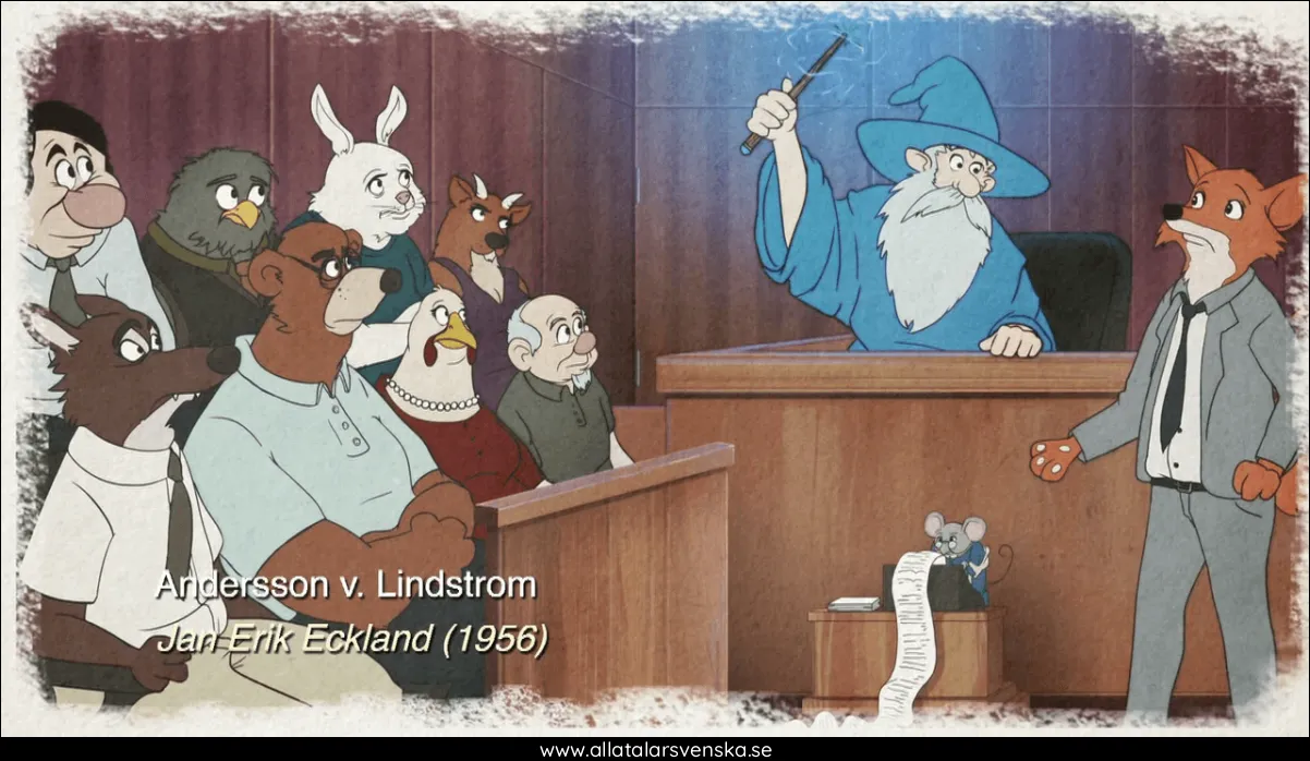 Berättare: "Those remarkable sketches were inspired by this man Jan Erik Eckland, a major fan of Disney films. And a prominent Swedish courtroom artist in the late 1950s."