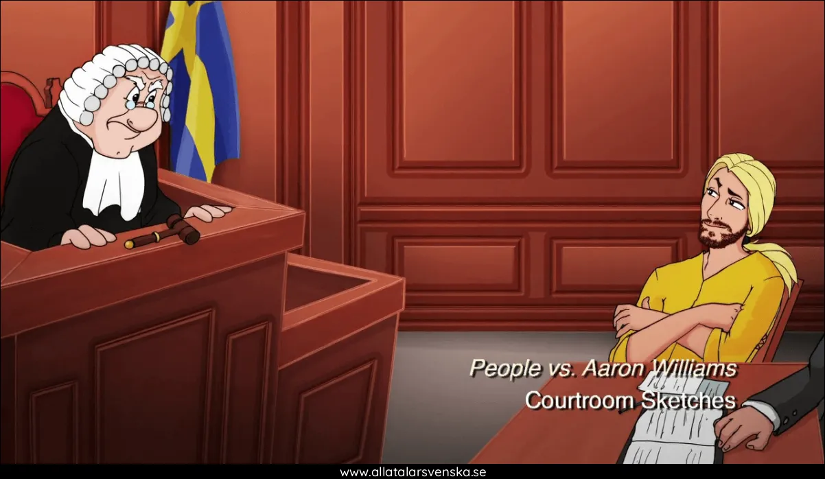 Berättare: "Aaron was hit with thousands of malpractice lawsuits. A Swedish judge ordered him to pay 12 million dollar in class action fines. Or face a decade in Swedish jail."