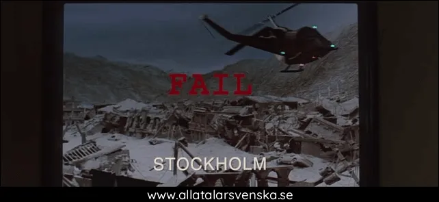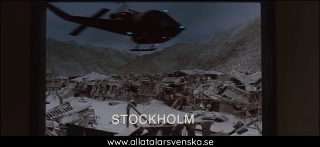 Vid en statusuppdatering lite längre in i filmen får vi se en sändning från Stockholm, ett Stockholm som verkar ha fått rätt mycket däng...