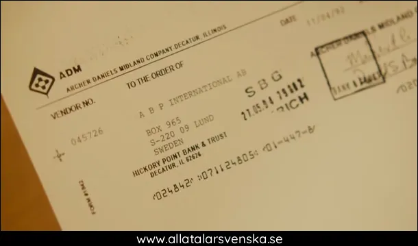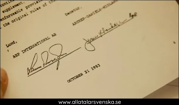 Lite senare i filmen uppdagas en av Marks lögner, en där han förfalskat underskrifter för att få loss stora summor pengar. Företaget som har använts som en front för det hela ligger i Lund, minsann. Man ser det på två olika papper som visas upp i filmrutorna.