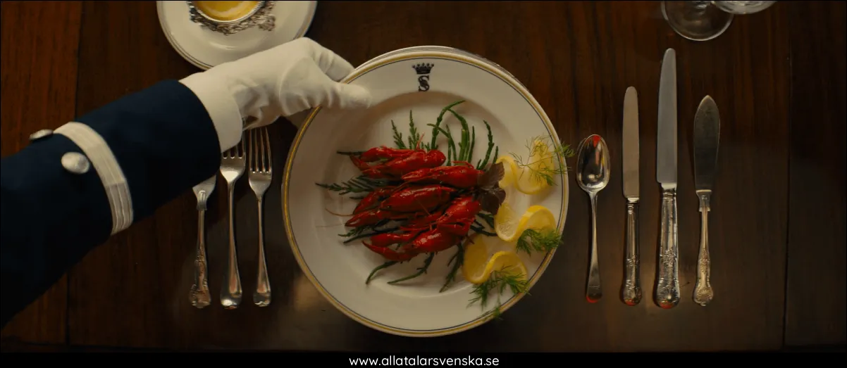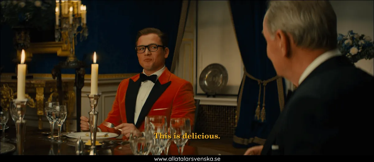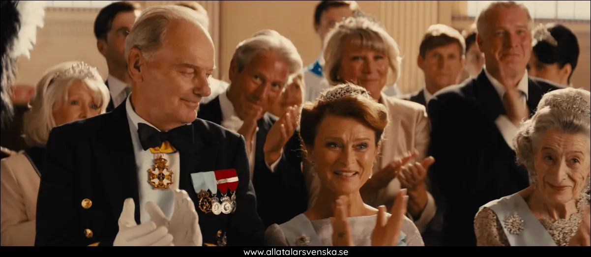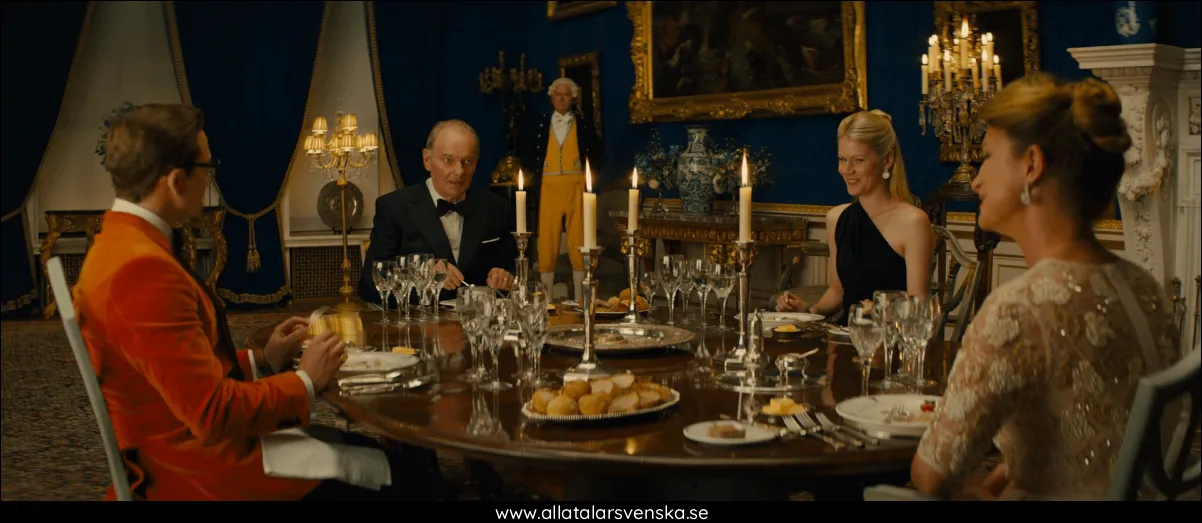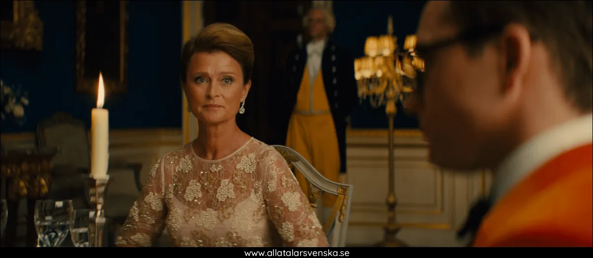 Sagt och gjort, nästa dag befinner sig Eggsy och Tilde i Sverige, på ett slott, där det intas middag tillsammans med kungen (Björn Granath) och drottningen (Lena Endre).