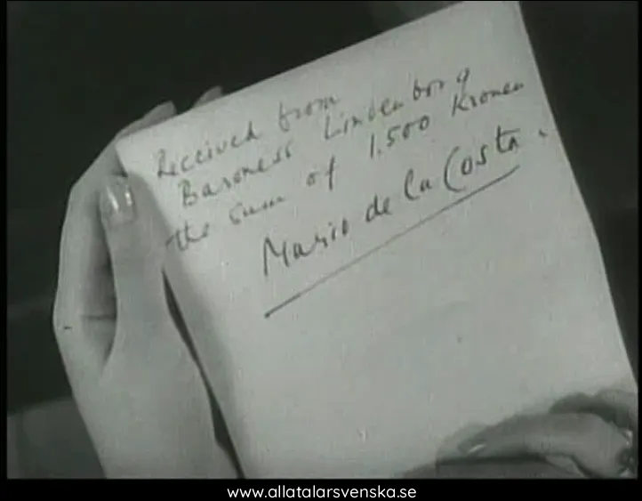 Vid ett tillfälle besöker baronessan och pianisten ett barnhem och de tas emot med flaggviftande barn (som borde varit blågula, men eftersom filmen är svartvit så är de grå). Vi får också se summan som baronessan ger Mario de la Costa: 1500 kroner.