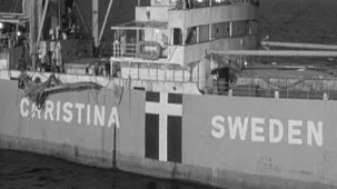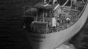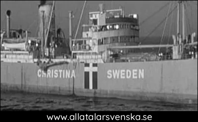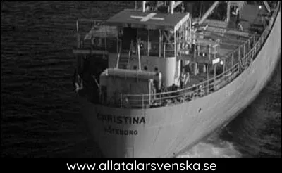 När de kommit en bit på väg får skeppets radiotelegrafist ett meddelande om att fiendeskepp finns i närheten så fartygets kapten Rolf Mueller (Yul Brynner) ger order om att fartygets ska kamofleras som ett engelsk skepp. Några dagar sedan gör de om samma manöver, men den här gången målar de om skeppet så det blir neutralt, skeppet får nämligen namnet Christina från Sverige.