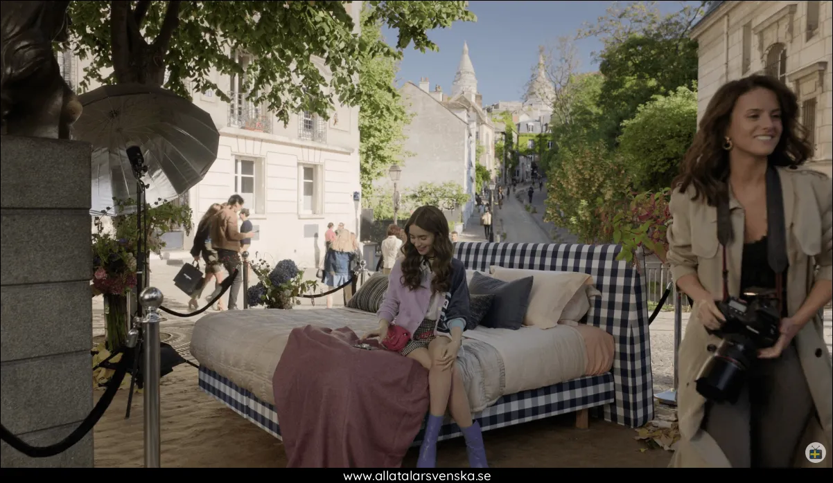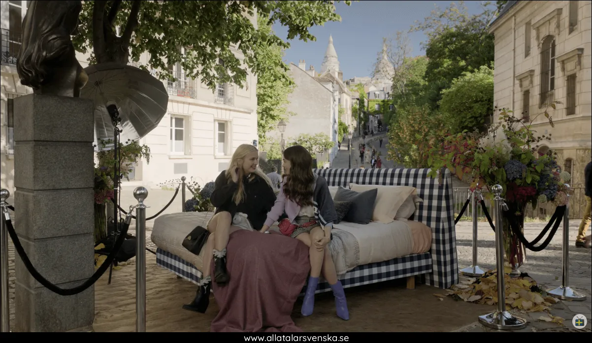 Sagt och gjort, en säng ställs ut vid slutet av gatan och Emily blir den första som lägger ut en foto därifrån. Emilys väninnan Camille (Camille Razat) kommer förbi och undrar vad som står på: