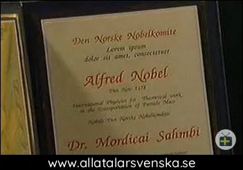 Jag har en bild från avsnittet där Mordecai tar emot priset, men på diplomet står att det är den norska nobelkommiteen som delar ut priset...